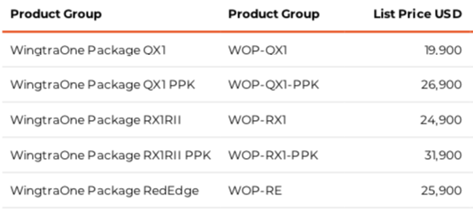 - WingtraOne Package RX1RII PPK End User Price : AED138,500/-