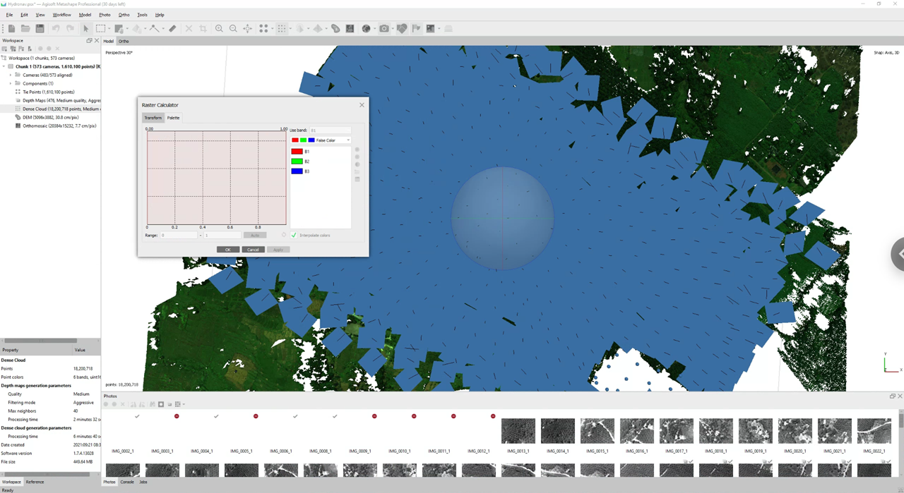 To export the resulting product, go to File > Export Orthomosaic > Export JPEG/TIFF/PNG. On the dialog box that pops up, make sure to select Index Color under Raster Transform. This will create the False Color product that you need. If you kept it at None, you’ll just get the typical 5- or 6-band product.