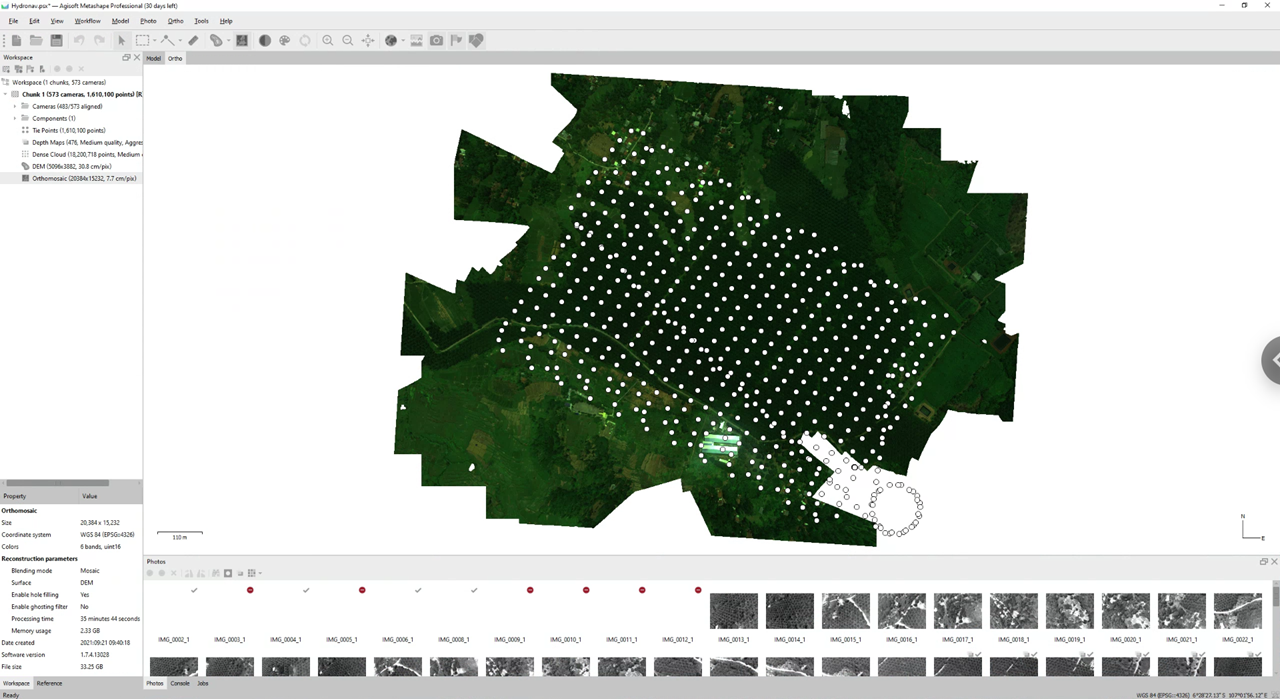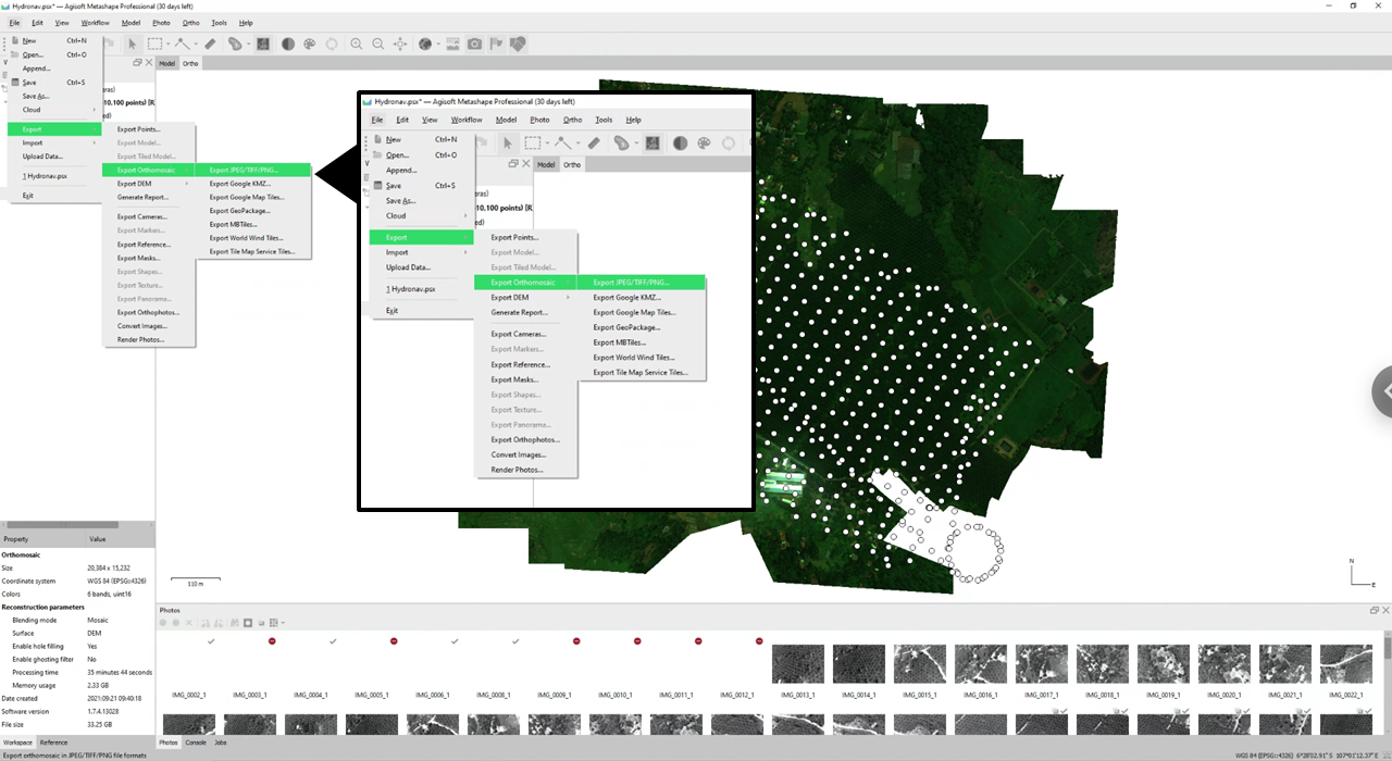 If you double-click on the Orthomosaic under the Components section on the left pane, it will direct you to the Ortho tab and this will display the resulting false-color product that you can now export.