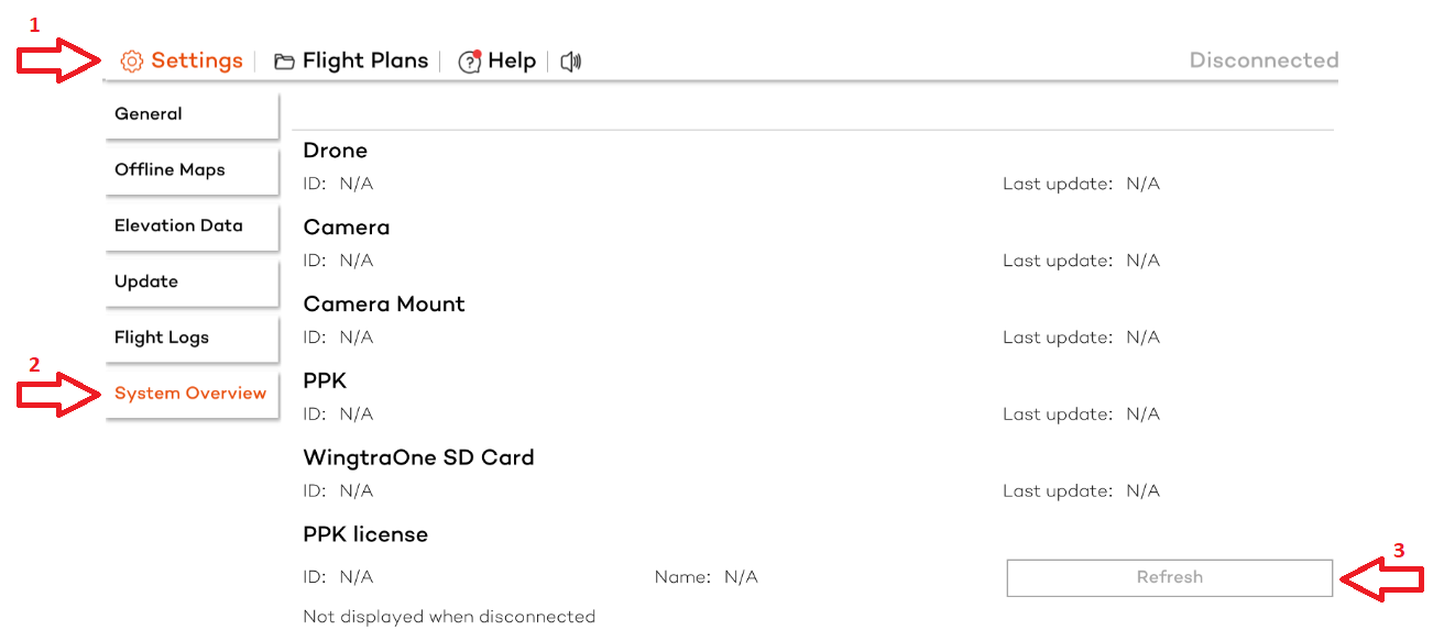 - In WingtraPilot, navigate to Settings > System Overview and tap on the Refresh button.