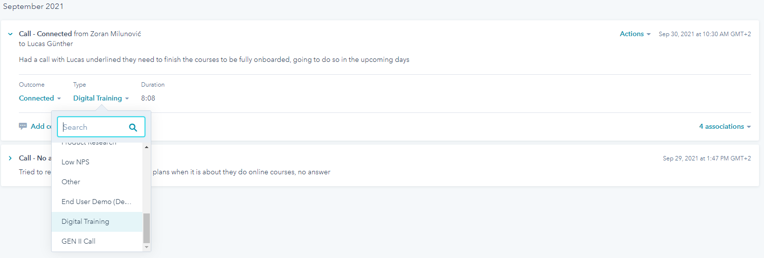 One week after the trainees are done with the course, a task that reminds the ticket owner he should reach the distributor/end-user (email or call) and schedule the follow-up calls with Q&A session using the template Online operator course - course completed. For end-users, a follow-up call is not mandatory, so in case an end-user is not interested, skip it.