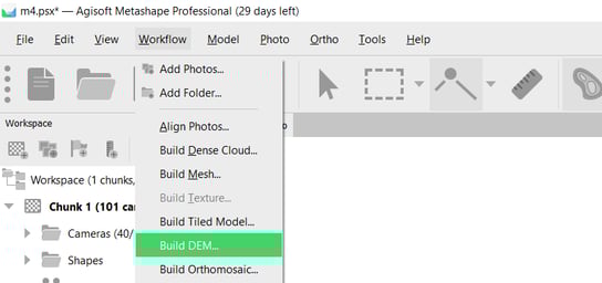 You can view the DEM by double-clicking on DEM under Chunk1 and see the map with different colors showing the heights.