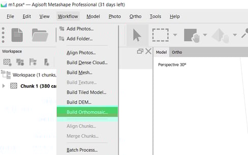 You can view the Orthomosaic by double-clicking on Orthomosaics under Chunk1