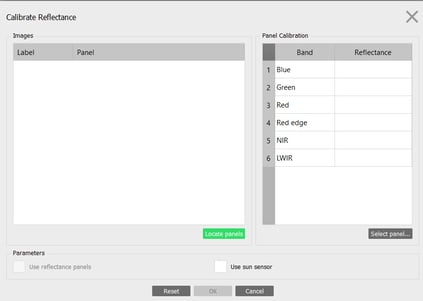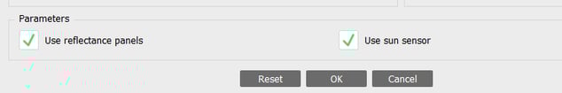 Note: before closing the reflectance calibration window, make sure to tick the Use reflectance panel and Use sun sensor boxes options.
