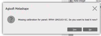 Note: a warning message showing there's a panel calibration missing will show up. This is because the thermal does not need the reflectance calibration.