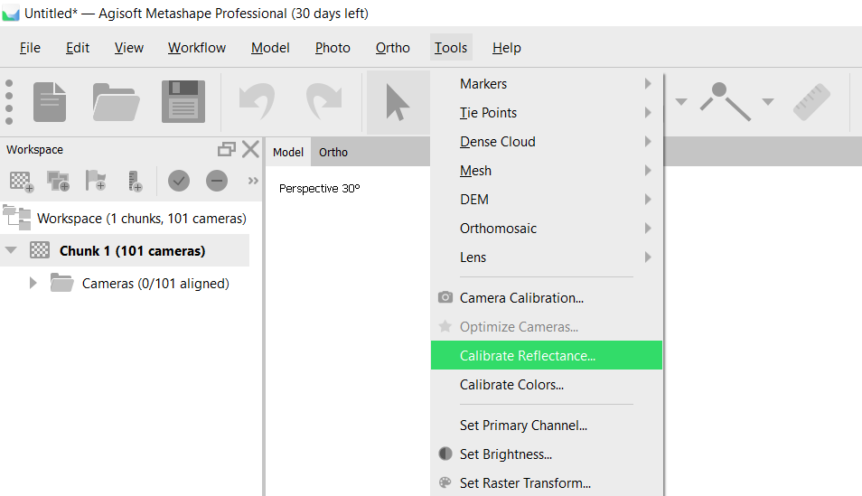 Under Calibrate Reflectance, choose Locate Panels and the software will look for the pictures of the reflectance panel and show the reflectance numbers.