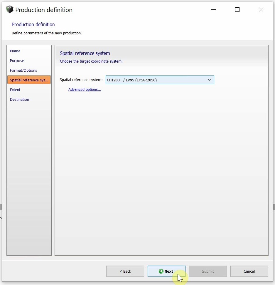 - Next, select the Spatial reference system depending on the coordinate system of the geotags. Set the camera orientation to X left, Y down. Click next when you are done.