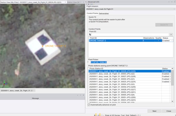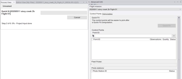 - Under the Photogrammetry tab select “Advanced UAS” to run the "Quick Fit" initial processing.