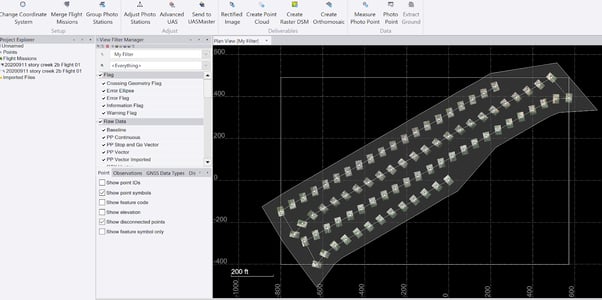 - It will load the images and Flightplan project in TBC. Under the Photogrammetry section, the workflow tends to flow from left to right in order.