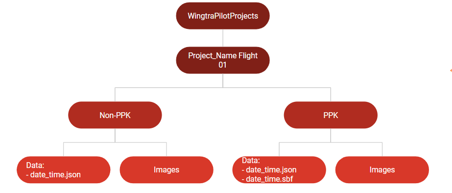 For every flight, a folder with the project's name is created on the SD card in the "WingtraPilotProjects" folder. Both the collected images and GNSS data of the corresponding mission are saved in this project folder.