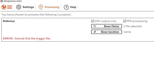 - Restart WingtraHub, select the project and start processing once again. During the processing the json file will be reconstructed and you will be able to PPK geotag your flight images successfully.