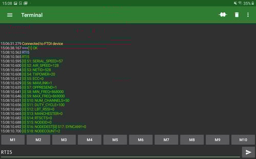 CAUTION - IT'S VERY IMPORTANT TO KEEP THE EXACT COMMAND AND ORDER of the following commands. (Note: the results of the commands are visible in the main interface of the program.)- Type the command RTI5 and press send