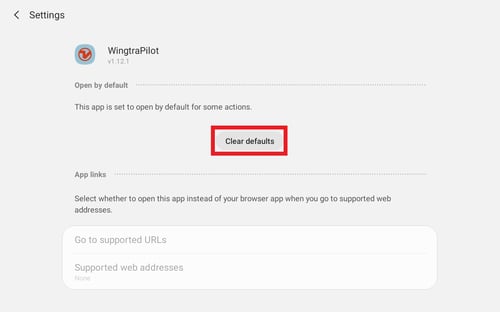 - Select “WingtraPilot” app as the default app to work with the connected device