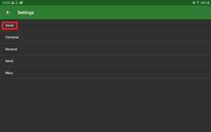- Go to settings (tap the three lines in the top left corner) and click on "Serial menu"