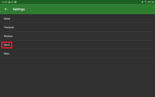 - Go back to the settings (arrow on top left) and click on “Send”