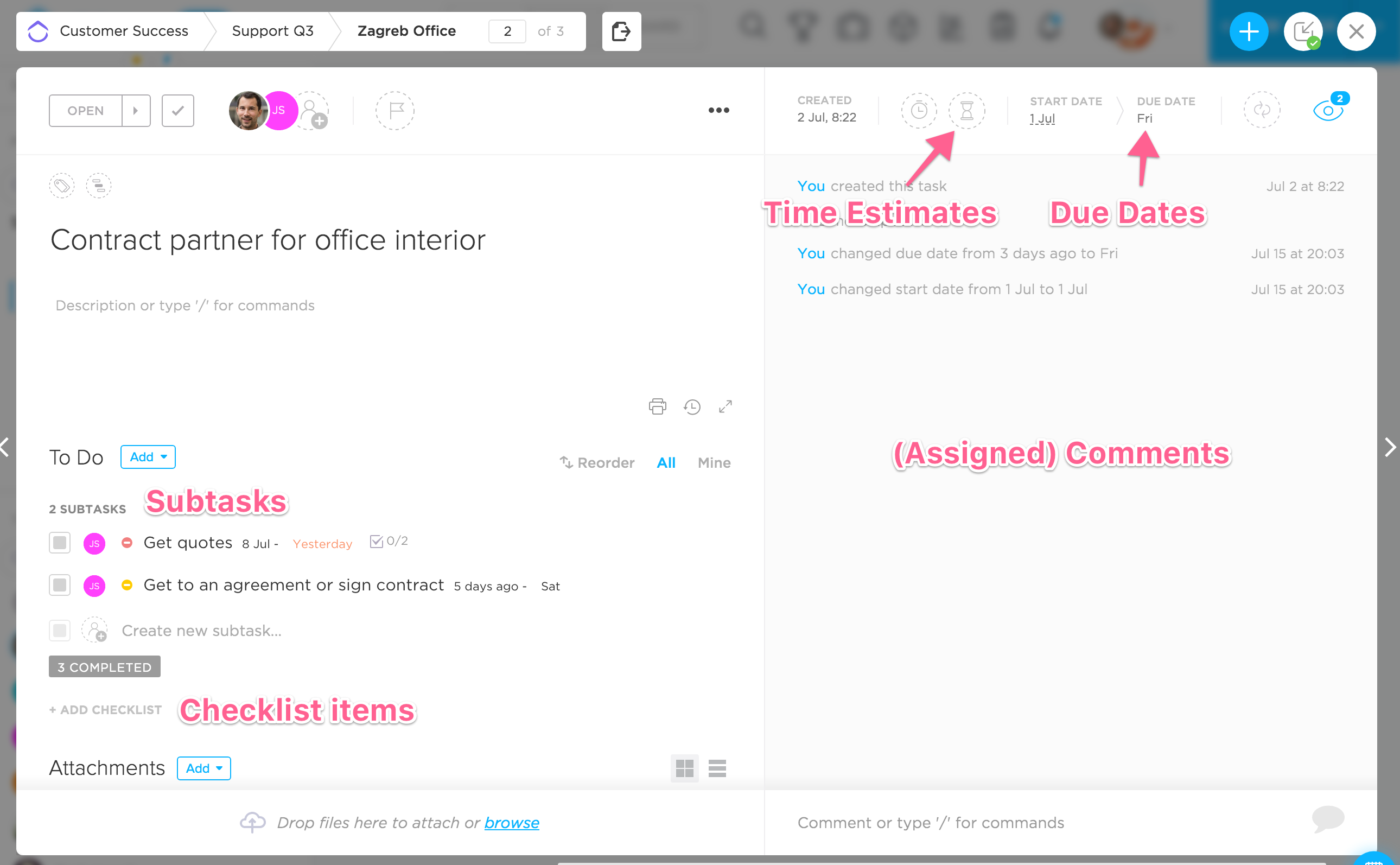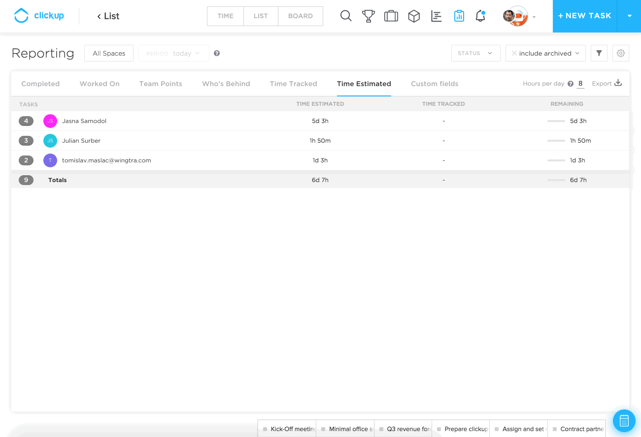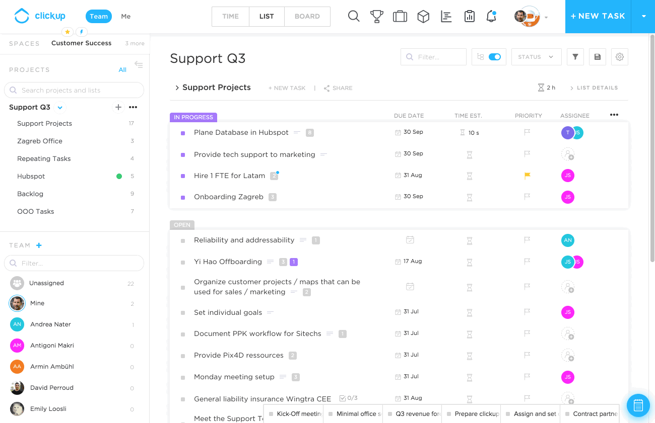 Tipp Customer Success: Make sure to set a due date and a time estimate. Otherwise the weekly time estimates will not work! If you estimate time for a task with multiple assignees, then the time gets estimated for every assignee.