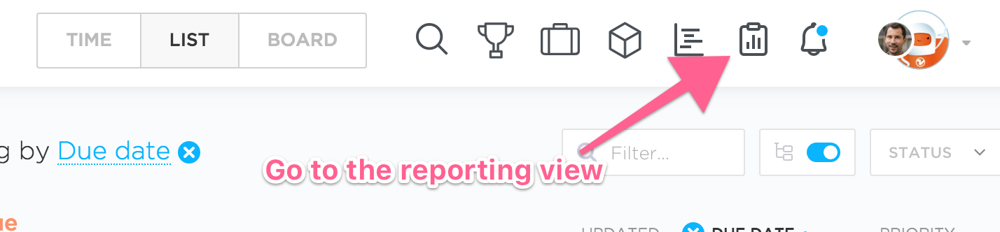 - List: Easiest view to get started. You can see tasks grouped by their project, list and status.