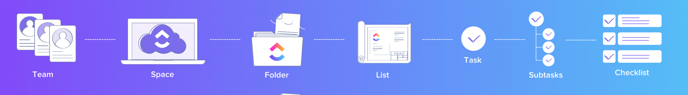 - Checklist items: Smaller to do's that are part of a tasks or sub-task. Can be assigned, but don't have their own due date and conversation history.