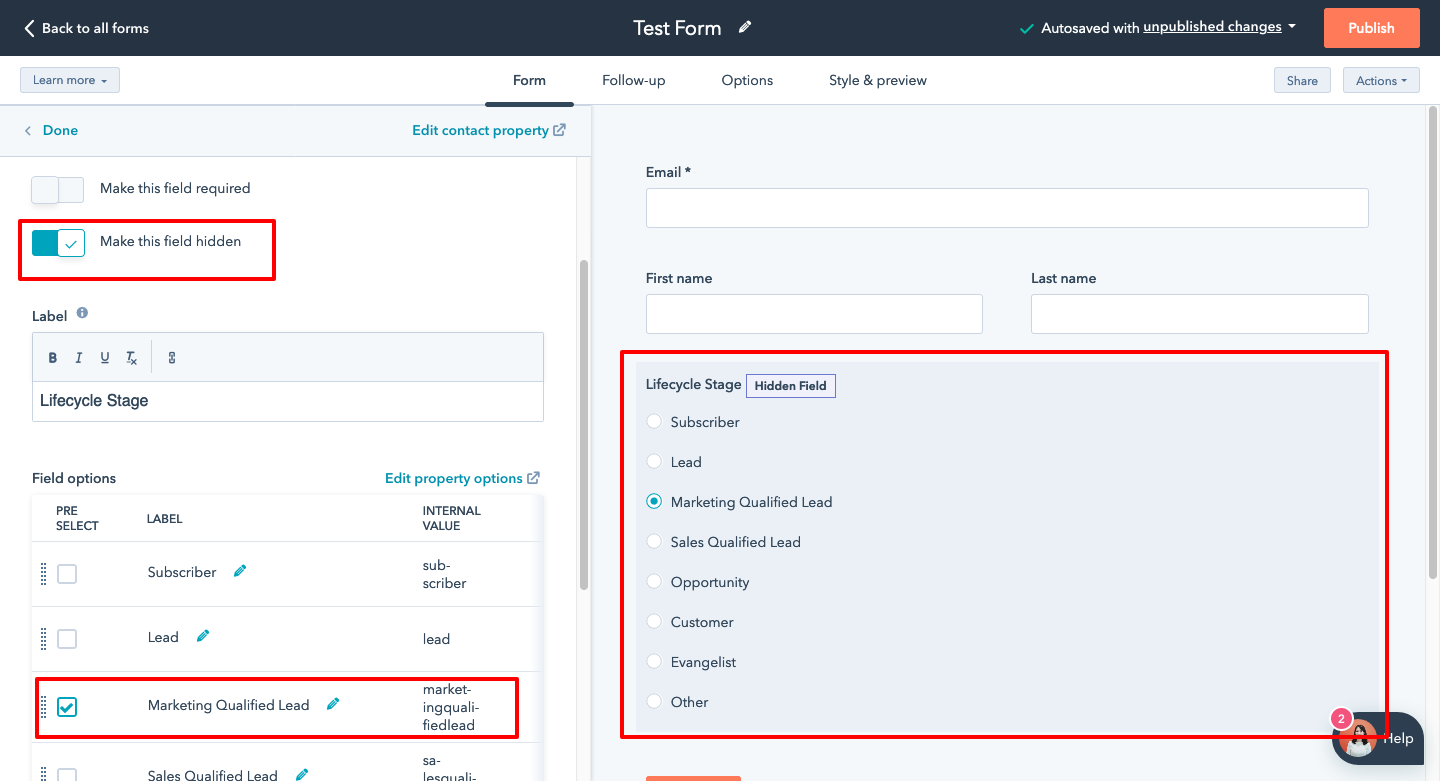 → Set the Lifecycle stage as “Lead”