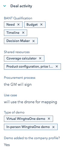 The specific Deal activity information can now be seen on the lefthand menu: