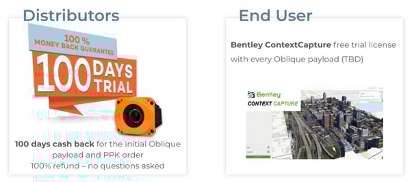 - Oblique trial offer: 100 days cash-back plus a free Bentley trial license for customers who order the oblique payload